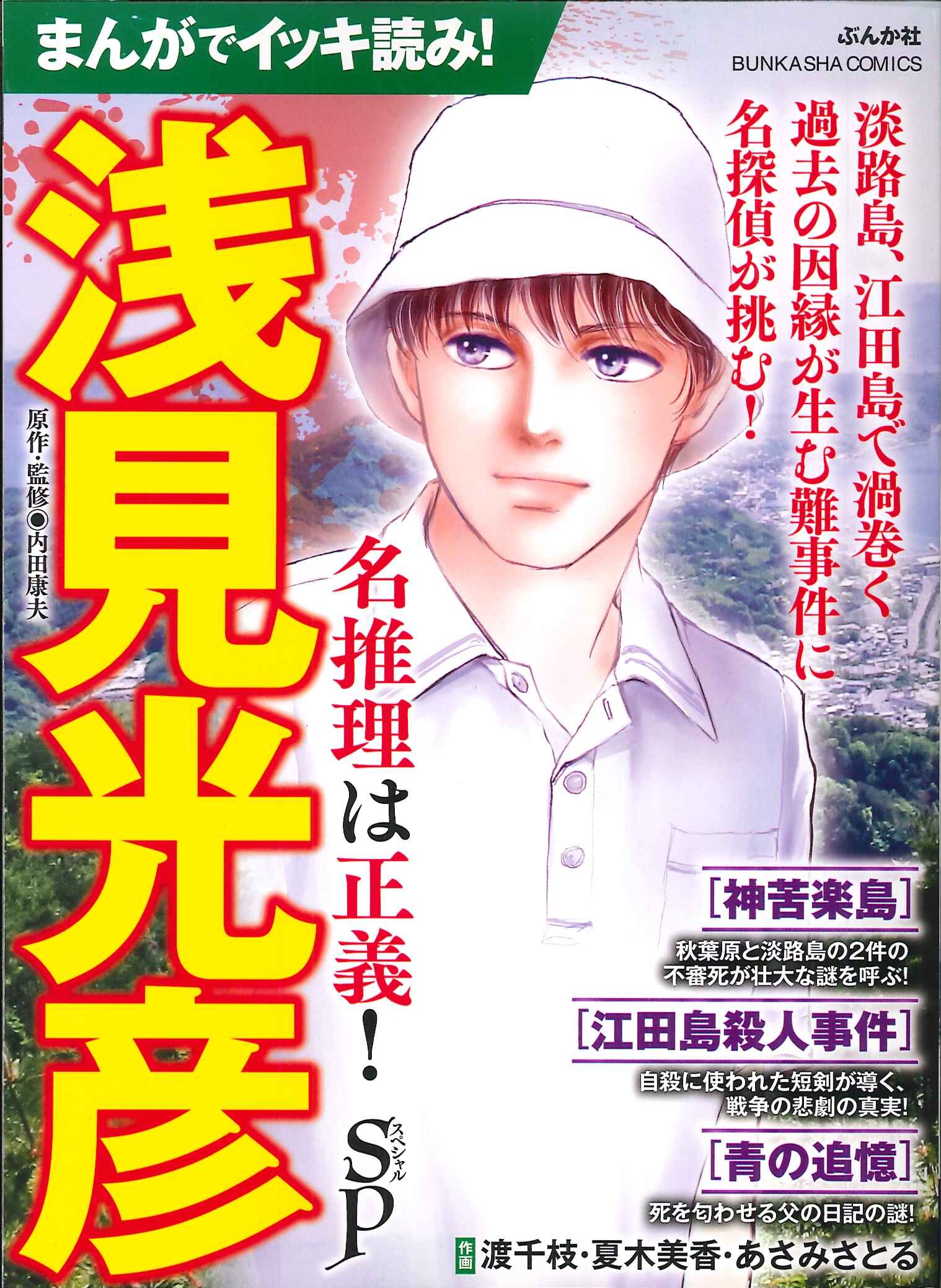 11月21日(金)、「まんがでイッキ読み!浅見光彦 名推理は正義!SP」(ぶんか社)が発売。 主にコンビニエンスストアで販売される廉価版コミックスです。 〈収録作品〉 ・『神苦楽島』(画/渡千枝氏) ・『江田島殺人事件』(画/夏木美香氏) ・『青の追憶』(原作/浅見光彦倶楽部・監修/内田康夫・画/あさみさとる氏)