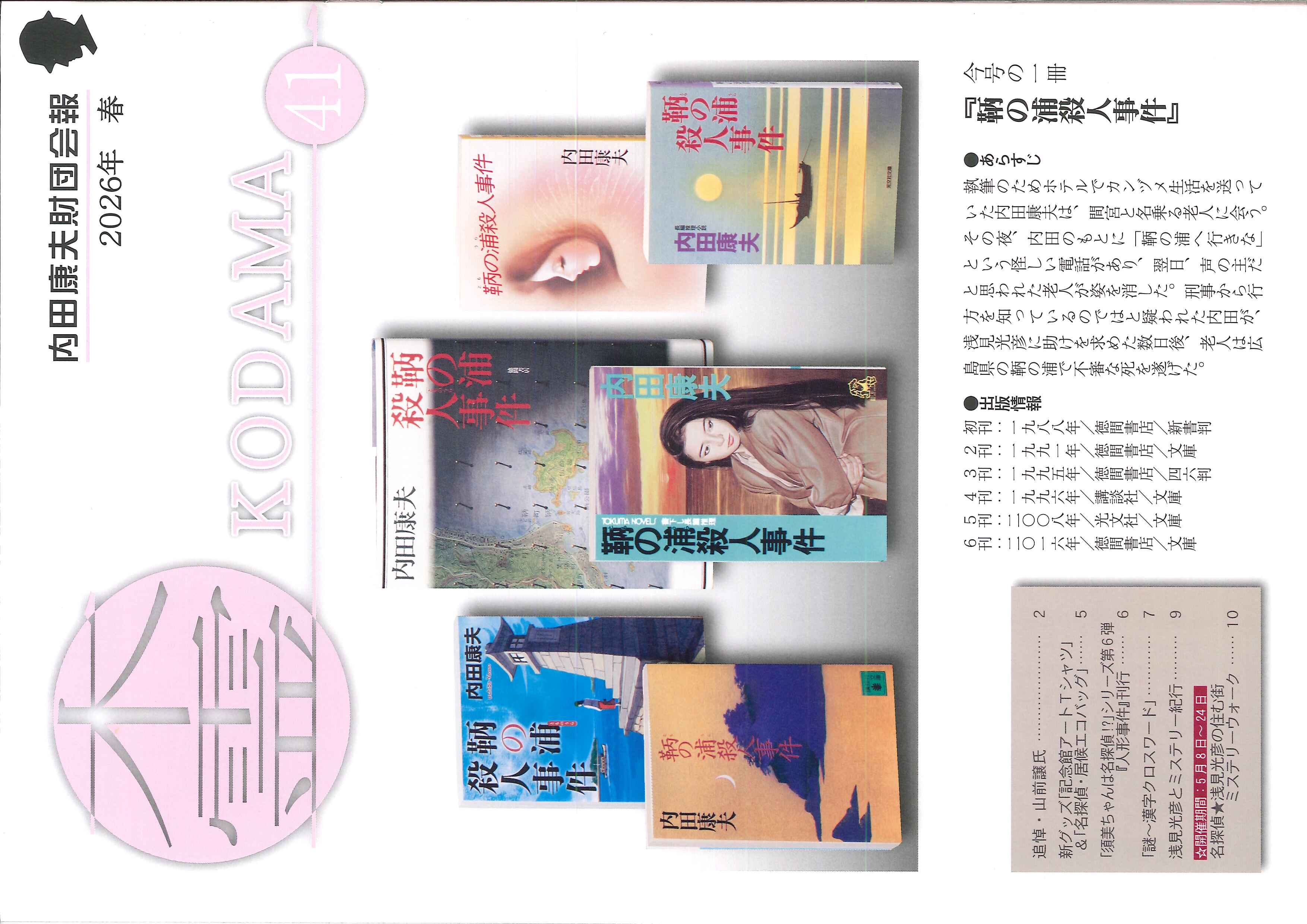 ※「浅見光彦 友の会」会員への皆様へは、順次発送しております。尚、半月以上経過してもお手元に届かない場合は、恐れ入りますが内田康夫財団事務局(0267-45-8971)までご連絡ください。