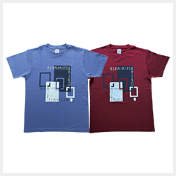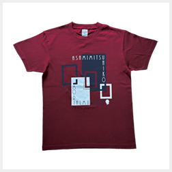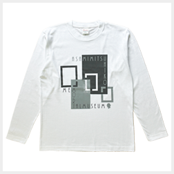 記念館の扉や窓、浅見光彦シリーズの本をイメージした大きさの違う四角形を現代アート風にデザイン。長袖のTシャツです。