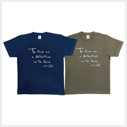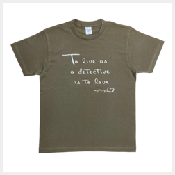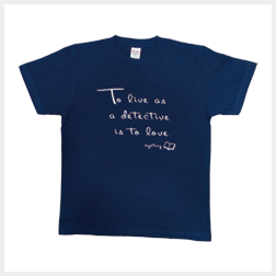 内田康夫の格言「推理は愛」を意味する「To live as a detective is to love.」と「mystery」の文字と本のイラストをあしらったデザイン。色は「インディゴ(藍)」と「オリーブ(緑)」の二種類。